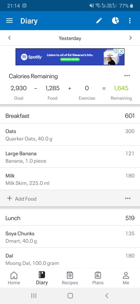 I won’t get in to the calorie calculation. Let’s keep it simple. The app does it for you. If you would still like to know, hit me up on Instagram at nikhil_anand45@.