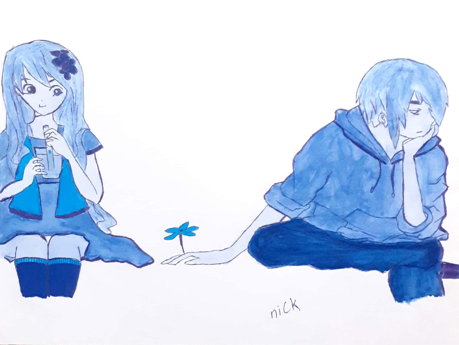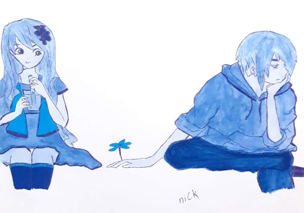 About the art – Recreated in 2014. Found it on Internet. All blues, from pens to paint, to sketch pens, to markers.